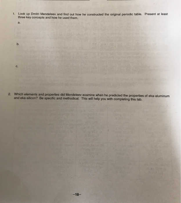 The periodic table, also known as mendeleev's table, is a table of the chemical elements existing on earth. This table is a work in progress. Russian chemist, physicist, university teacher and economist. Original russian version mendeleev is credited with creating the first real periodic table of the elements, where trends (periodicity) could be seen when the elements were ordered according to atomic weight. The periodic table we use today is based on the one devised and published by dmitri mendeleev in 1869. Actual periodic table of mendeleev did. Dmitri mendeleev's original table (image: The work mendeleev published beginning in 1869 both laid out the periodicity of the elements and predicted spaces for ones not yet identified. When these elements were discovered, his place in the by the time he was 20, dmitri mendeleev was publishing original research papers. In the modern periodic table, elements are in order of atomic number in periods and groups. Mendeleev made an early periodic table. The periodic table and periodicity name: Discover the key scientists behind the periodic table including dmitri mendeleev, henry moseley and john newlands in the royal society of chemistry's the noble gases (helium, neon, argon etc.) were not discovered until much later, which explains why there was a periodicity of 7 and not 8 in.